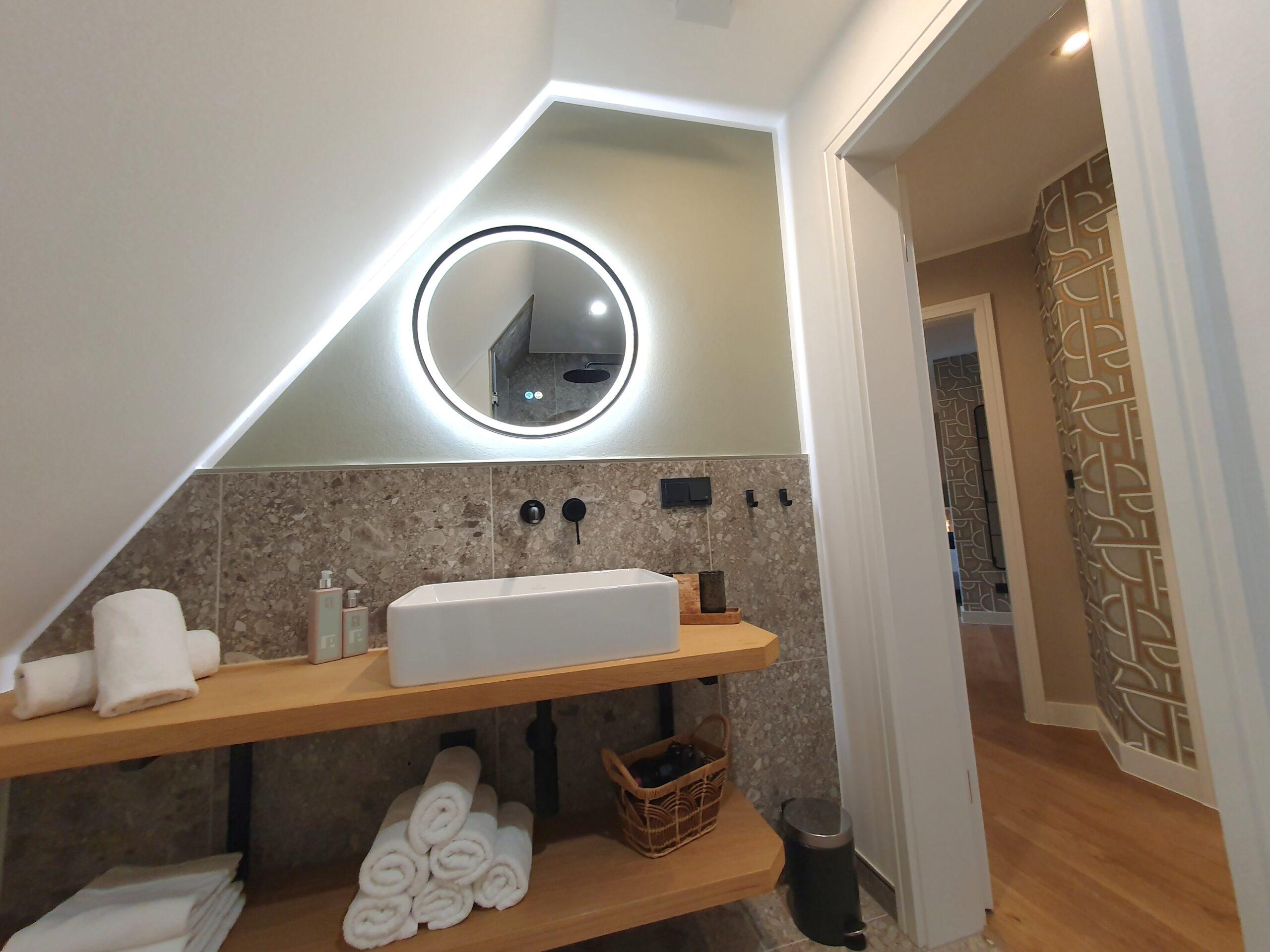 Die kombinierte Buchung von Residences 27 und 28 eröffnet ein stilvolles Wohnkonzept für bis zu 6 Personen auf über 90 m². Durch eine Verbindungstür lassen sich beide Einheiten zu einem großzügigen Ensemble vereinen – mit insgesamt drei Schlafbereichen, zwei Bädern und einem separatem WC, sowie einer erweiterten Minibarausstattung inklusive Nespresso-Maschine und Wasserkocher.