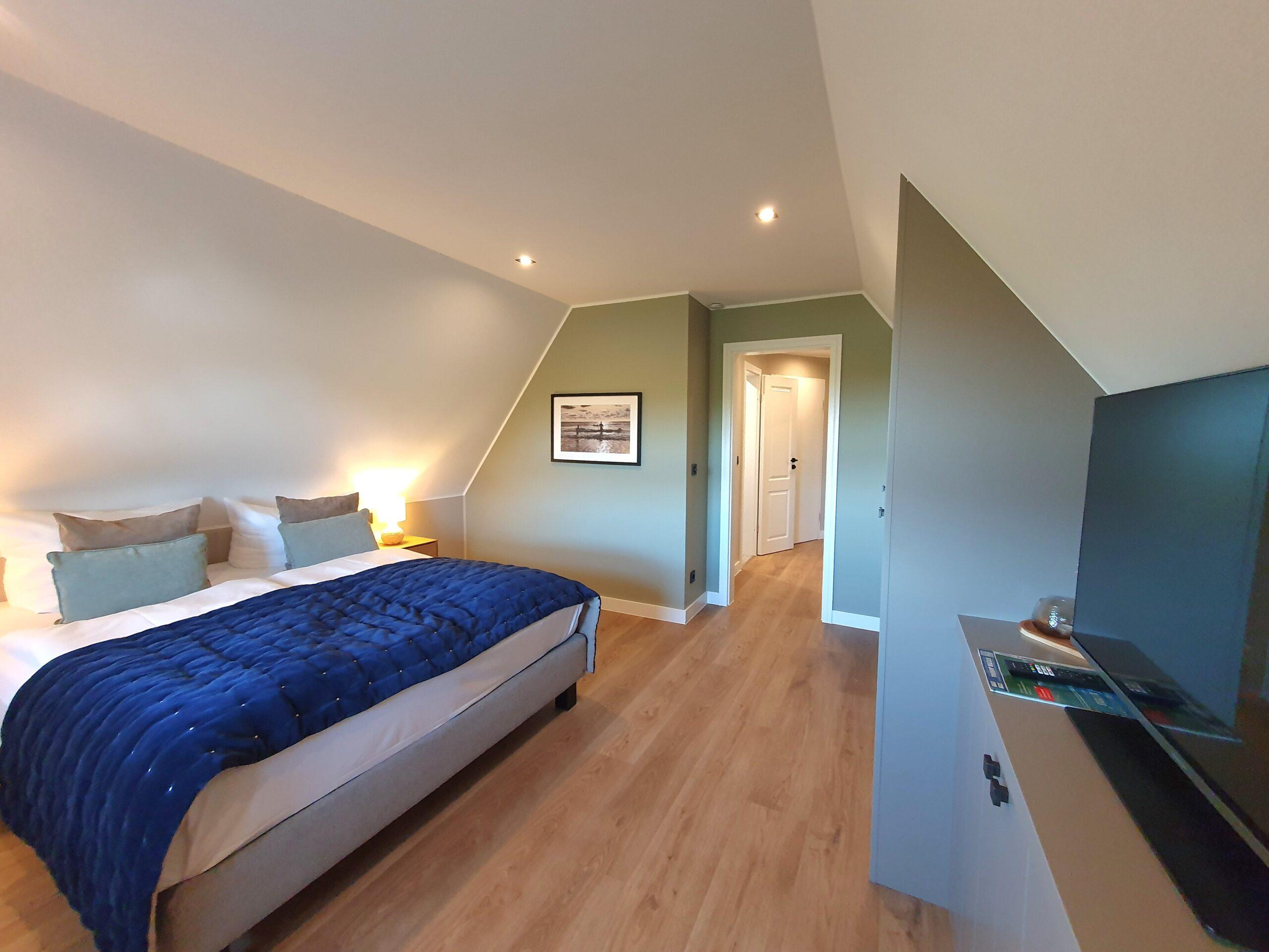 Ob als Familienlösung mit jugendlichen Kindern, als Rückzugsort für befreundete Paare oder als Kombination aus gemeinsamem Wohnen und individueller Ruhe – diese Einheit bietet maximale Flexibilität bei kompromisslosem Komfort. Natürlich mit Zugang zu Sauna, Fitness, Lobby und Terrasse der Hotel Duene Residences, unweit von Strand und Dünen.